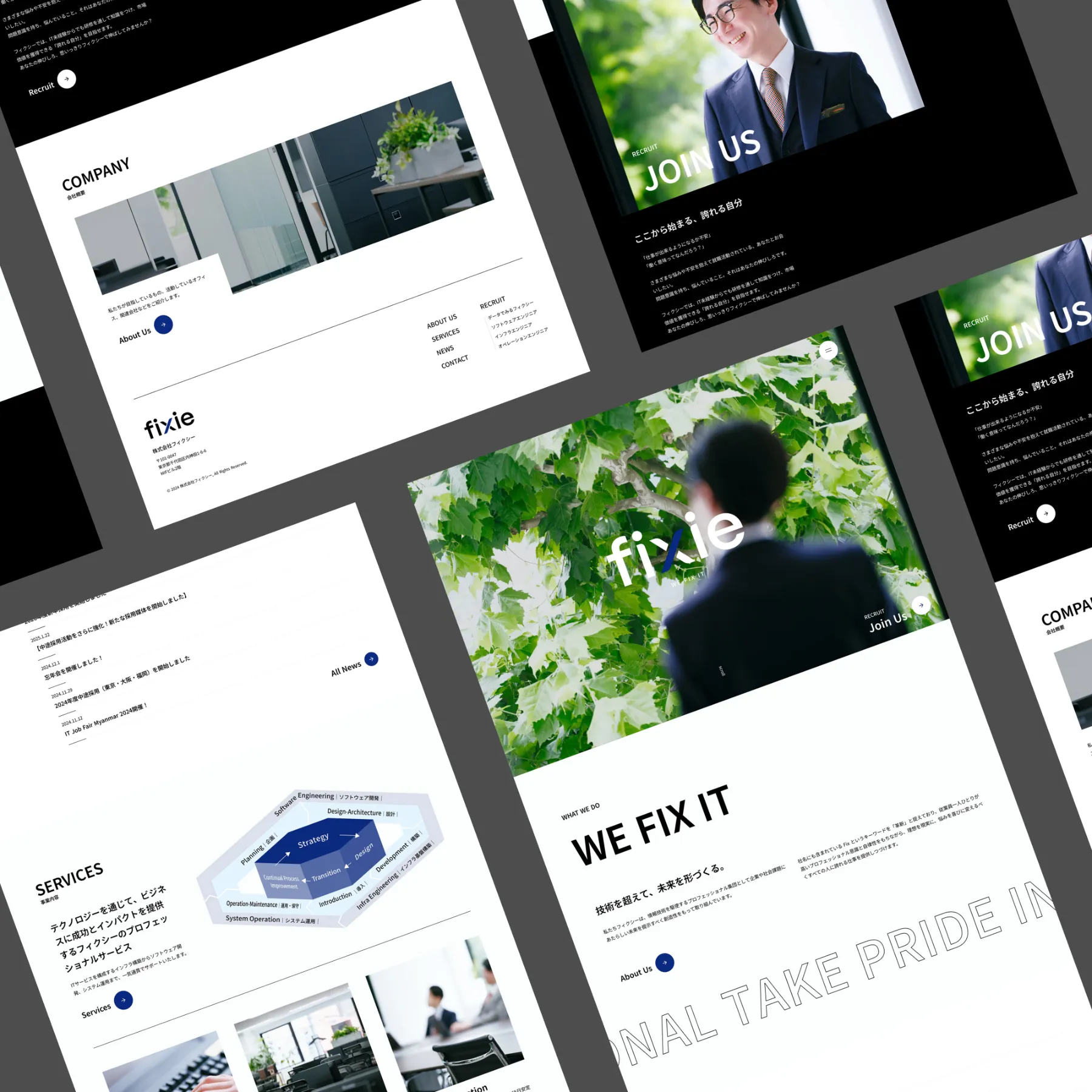 企業や社会課題にあたらしい未来を提示すべく創造性をもって取り組んでいる情報技術を駆使するプロフェッショナル集団「株式会社FIXIE」様のコーポレートサイトリニューアルデザイン制作を担当させていただきました。