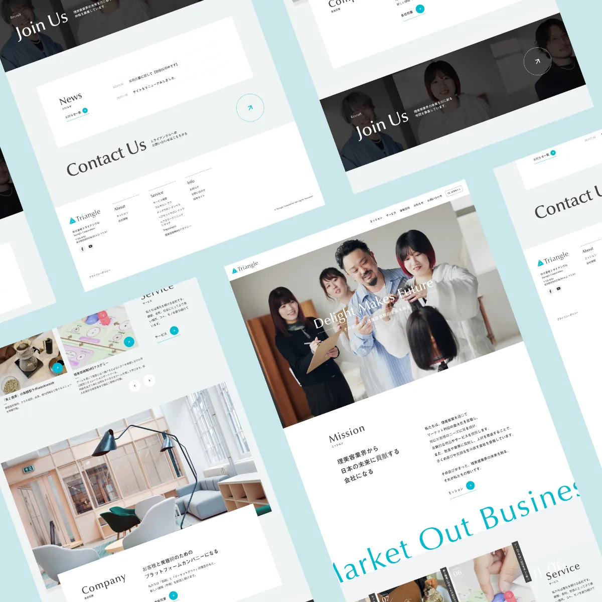 「理美容業界から日本の未来に貢献する会社になる」をミッションに掲げ、各種サロンやオリジナルヘアケアブランドなど「健康」と「美容」に特化した事業を展開されている「株式会社トライアングル」様のコーポレートサイト・ロゴリニューアルデザイン制作を担当させていただきました。